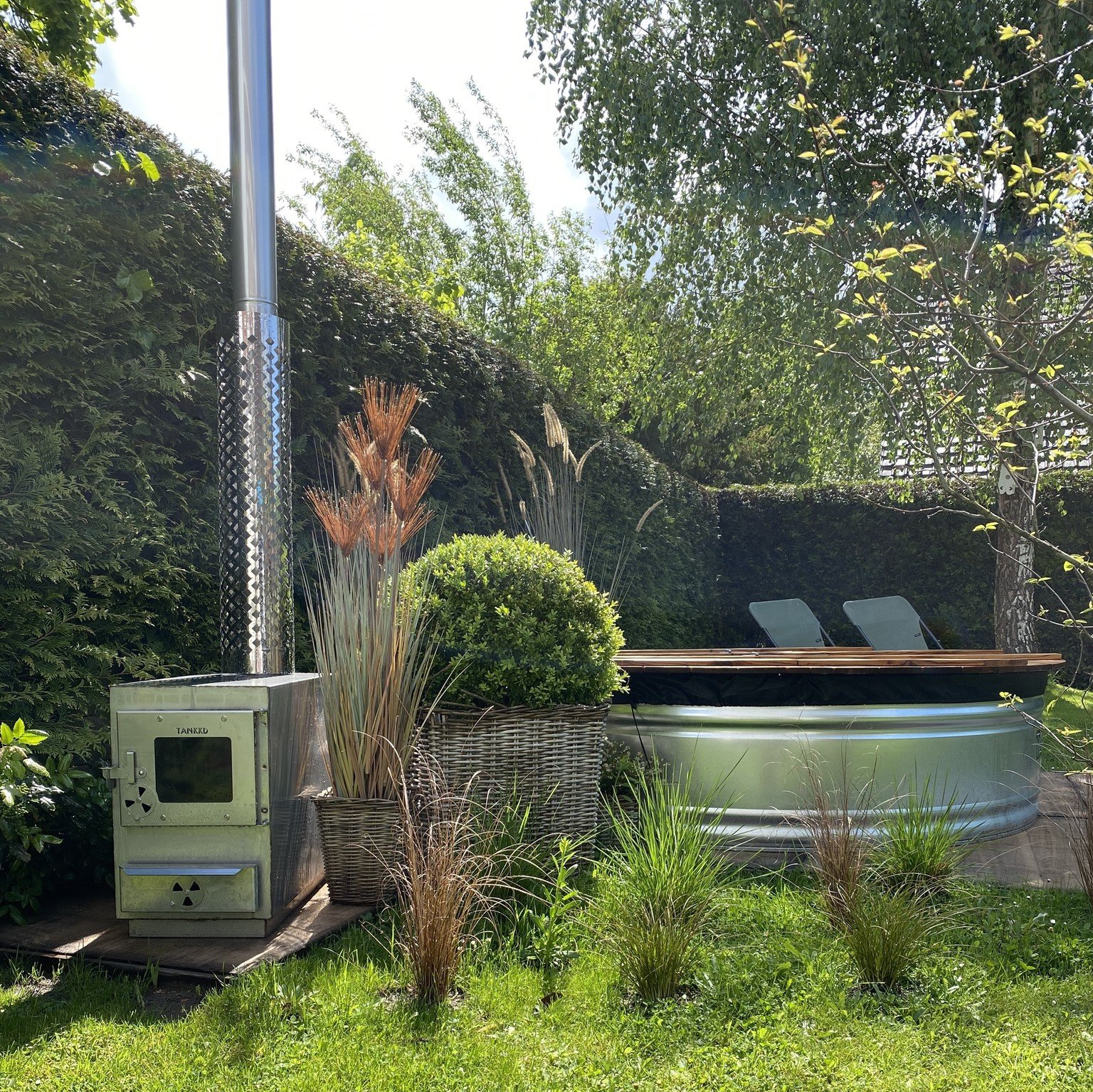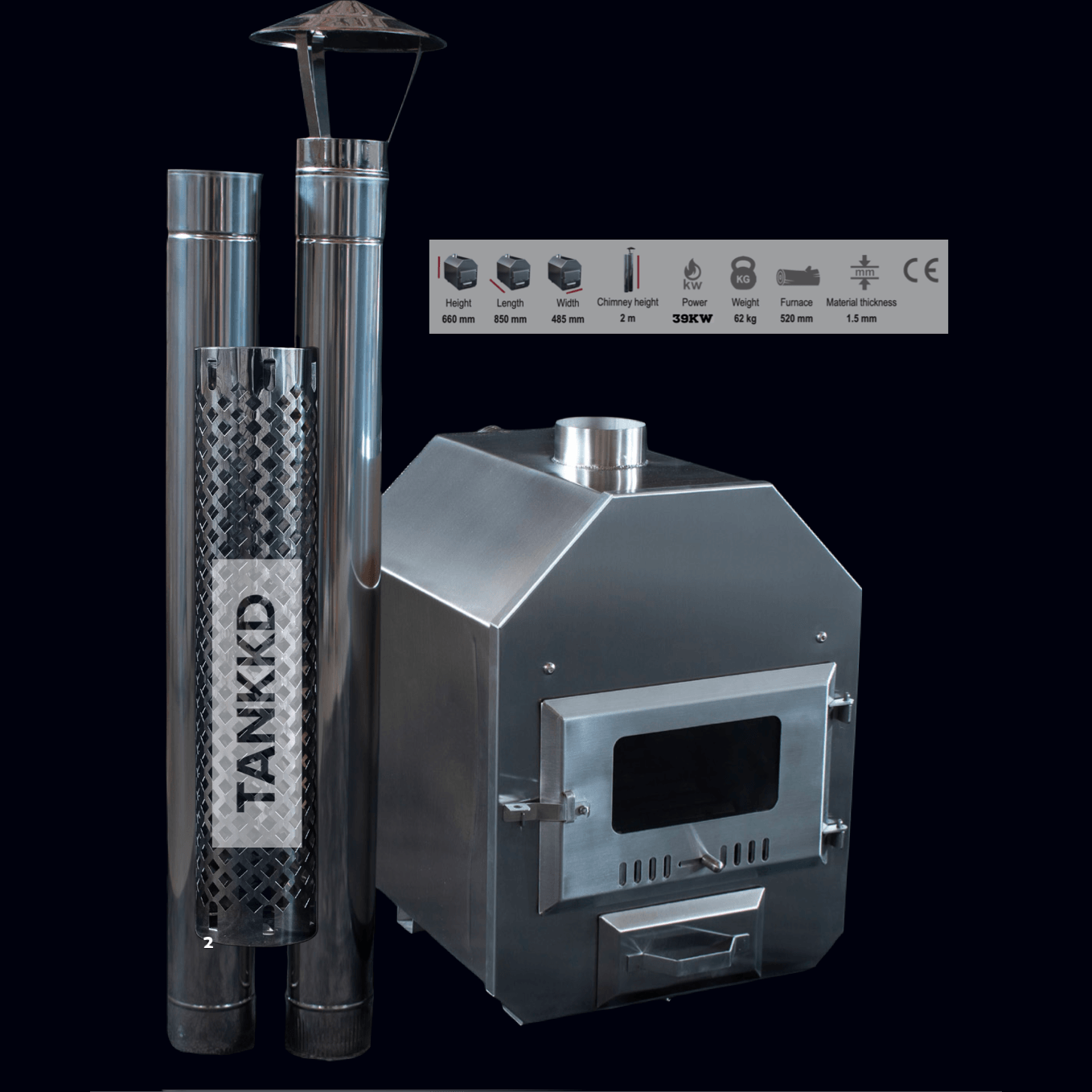 Le poêle à bois "TankKD" est en acier inoxydable spécialement conçu pour être en extérieur.