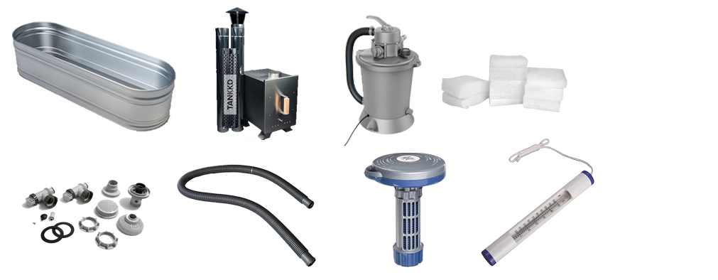 Pack complet avec un Stock Tank ovale "Green Label", un groupe de filtration et un poêle à bois "Firebox" avec sa cheminée et tous les raccords nécessaires pour assurer une bonne connexion.