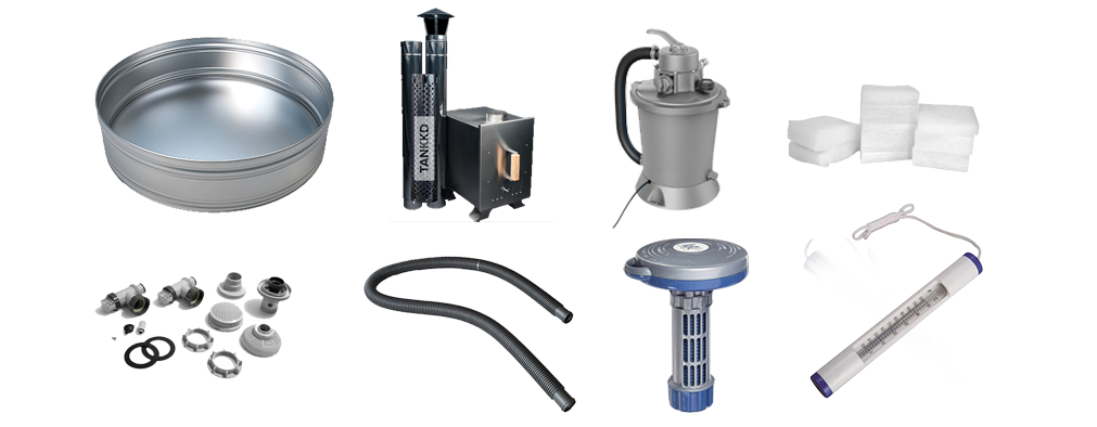 Pack complet avec un Stock Tank rond "Black Label", un groupe de filtration et un poêle à bois "Firebox" avec sa cheminée et tous les raccords nécessaires pour assurer une bonne connexion.